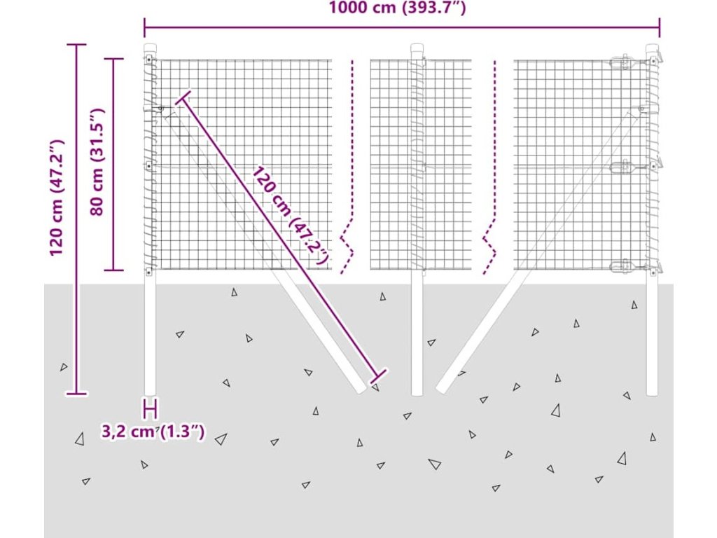 Plotový sloupek. Šedá 10 x 0,8 m (mesh 25 x 25 mm) Ocel a PVC [3351807]
