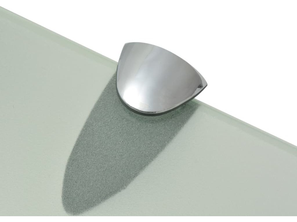 Tato skleněná police sestává ze 2 standardních svorkových držáků, vyrobených ze slitiny zinku, a tvrzeného bezpečnostního o síle 8 mm. Police má nosnost 10 kg. Montážní příslušenství je součástí balení a montáž je snadná.