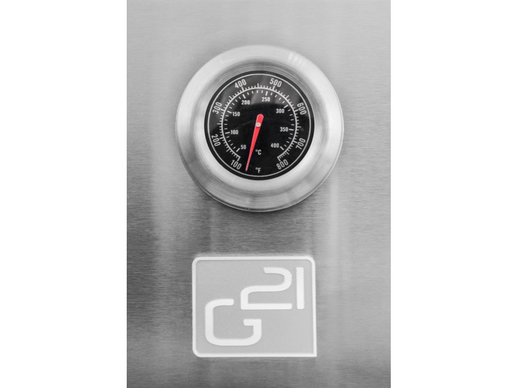 Gril G21 Nebraska BBQ v celonerezovém provedení s atraktivním černým orámováním zaujme už na první pohled. Nejde však jen o design. Nerezová ocel zajišťuje dlouhou životnost, snadnou údržbu a odolnost. Nechybí ani praktické odkládací plochy. Na levé straně grilu najdete stolek s marinovací miskou a dřevěným prkénkem. Vpravo se nachází odkládací stolek s bočním hořákem.