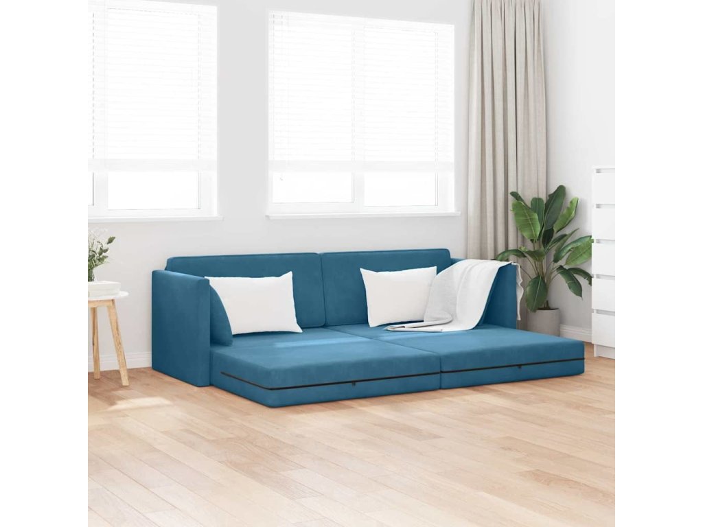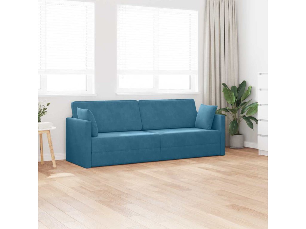 Podlahová pohovka na spaní 200cm Modrá samet [4106725]