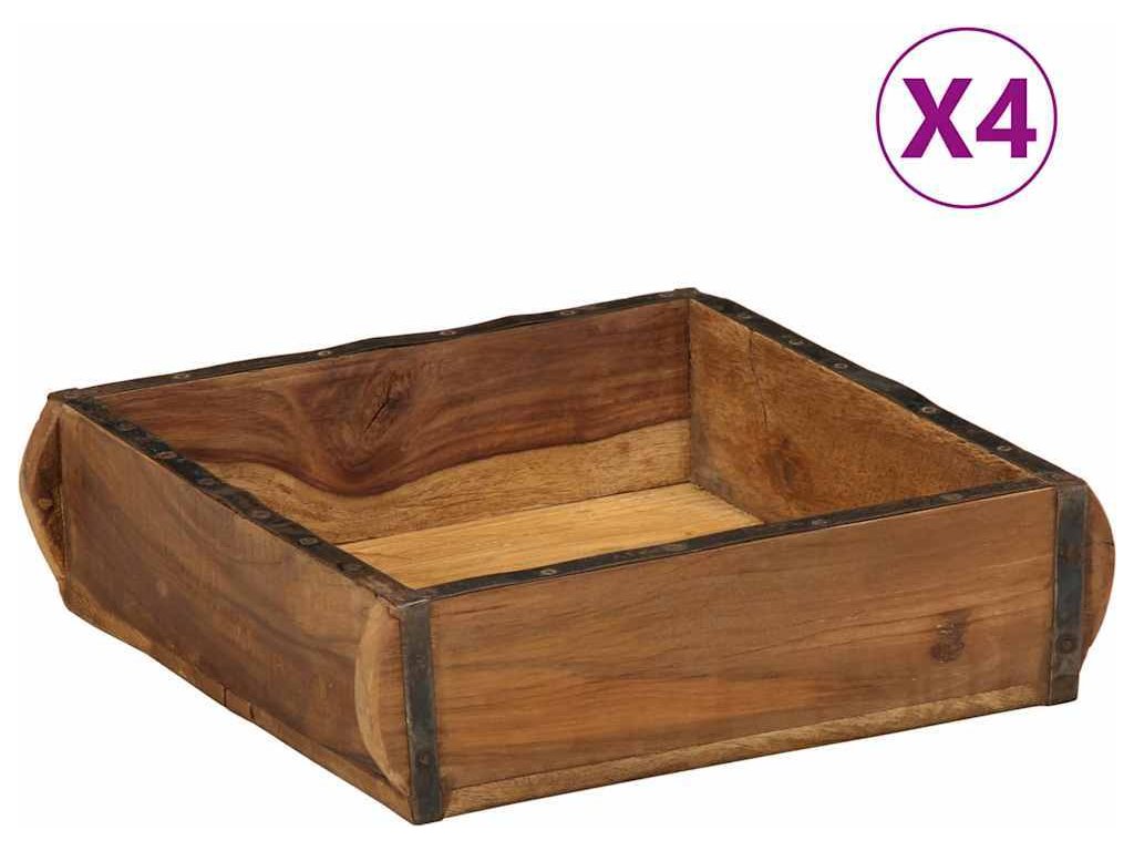 Podnos 4 pcs Hnědá 29 x 31 x 10 cm Masivní obnovované dřevo [4019616]
