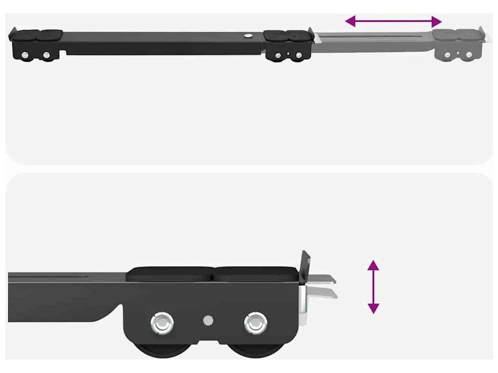 - Součásti: Tento podstavec obsahuje ruční nastavitelný mechanismus, který se přizpůsobí různým velikostem spotřebičů, a hladká kolečka pro snadný pohyb po podlaze.