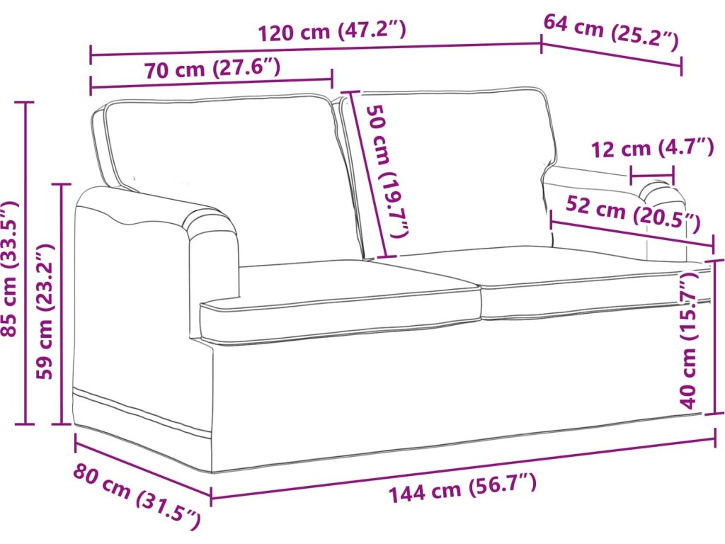 - 1 x pohovka: 144 x 80 x 85 cm (ŠxHxV)
