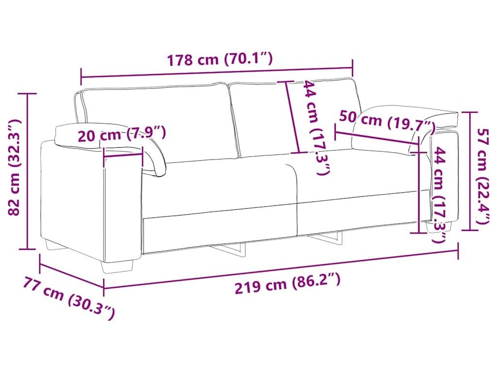 - Celkové rozměry: 219 x 77 x 82 cm (Š x H x V)