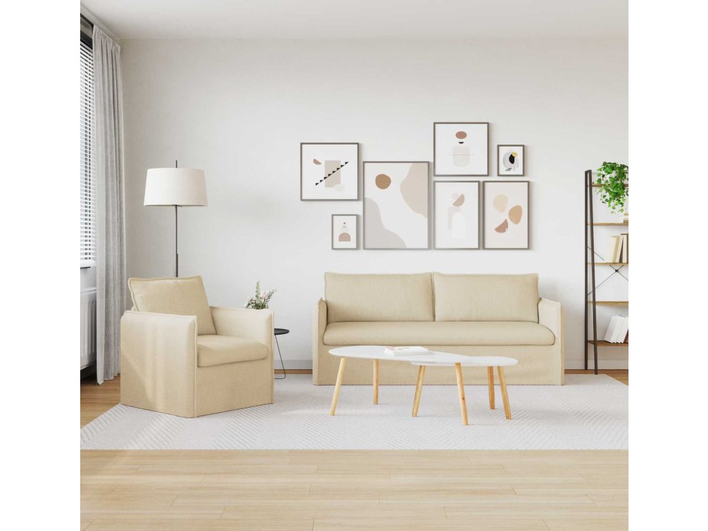 Pohovka 2 pcs Krémová 196 x 82 x 85 cm textil [3407616]