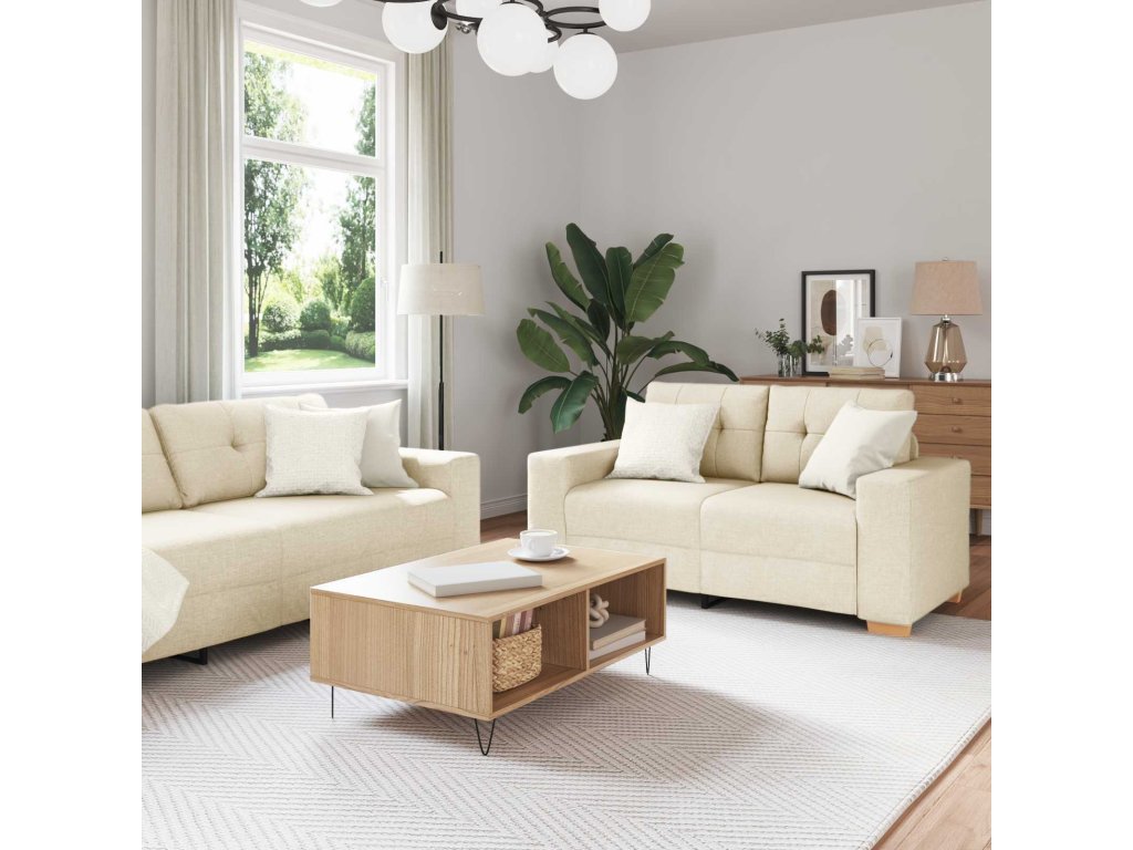 Tento elegantní set pohovek z lnu vytváří příjemnou atmosféru pro každý obývací pokoj. S moderním, minimalistickým stylem a béžovou tkaninou vyzařuje sofistikovanost. Díky čistým liniím a jednoduchému designu se hodí k různým dekoracím.