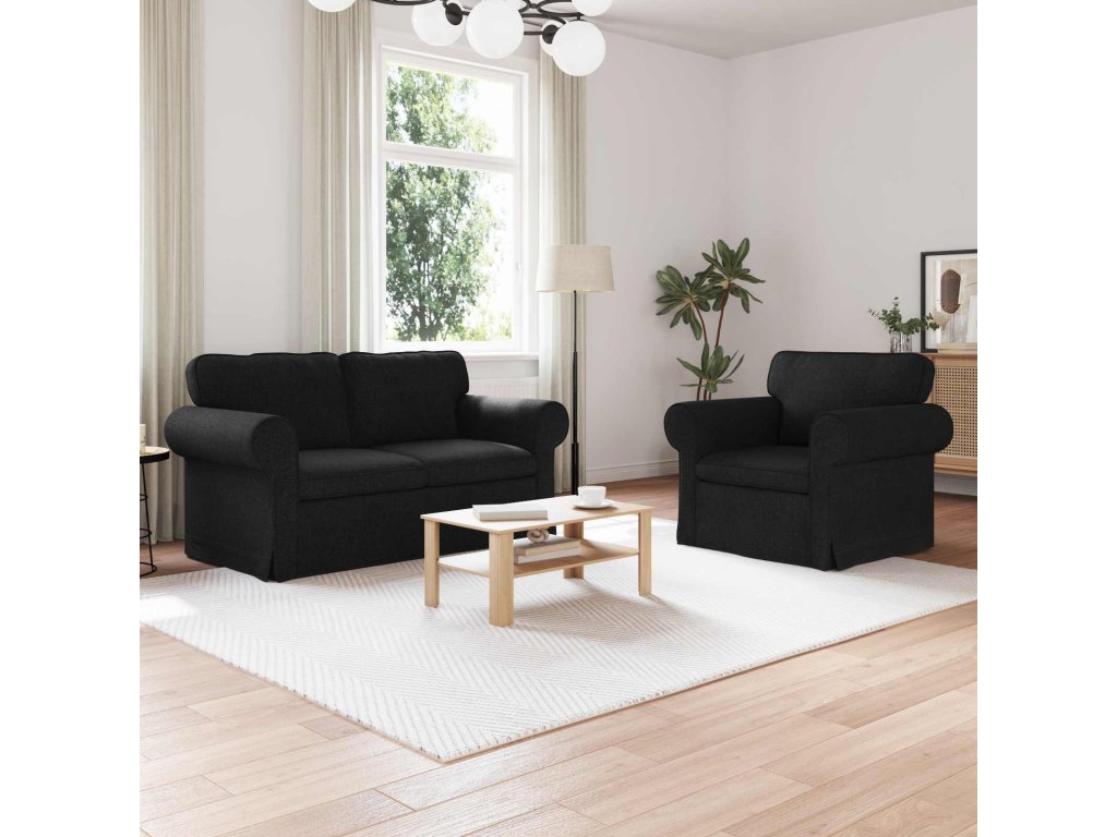 Pohovka 2 pcs Černá 155 x 82 x 80 cm textil [3407488]