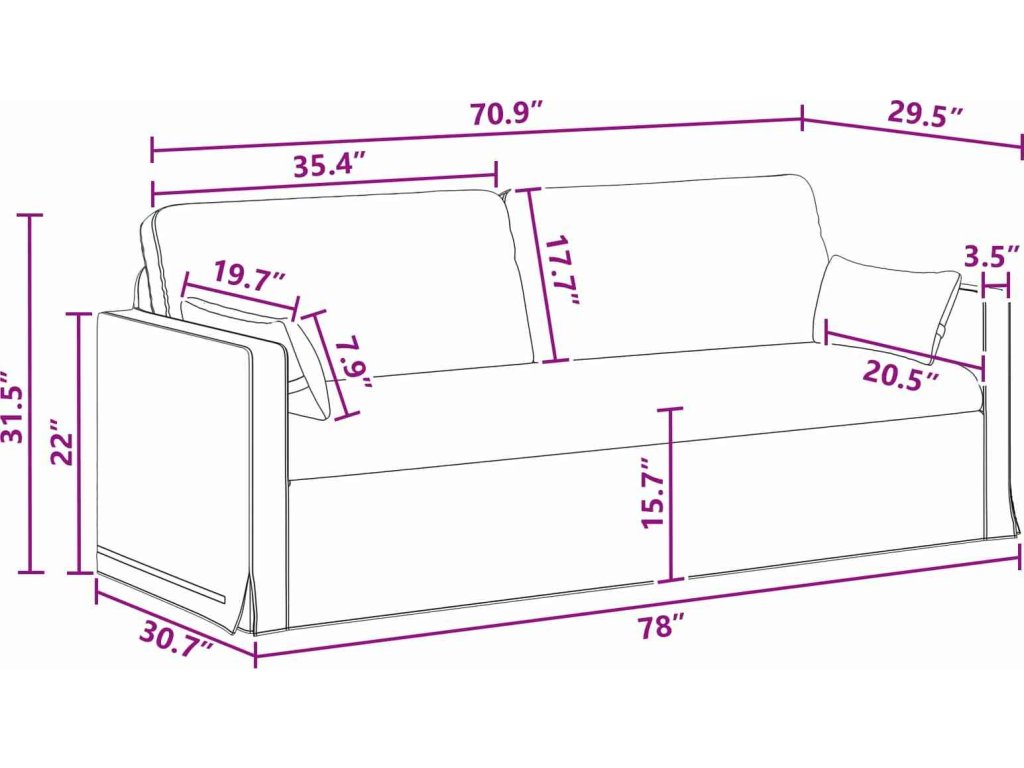 - Prémiové materiály: Pohovka je vyrobená z kvalitního kovu pro pevný a spolehlivý základ, což zajišťuje stabilitu na dlouho. Hladké tkaniny na polštářích vytvářejí stylový kousek odpovídající modernímu dekoru. Tohle spojení dělá z pohovky trvanlivý a atraktivní kousek, který si sedne do různých interiérů.