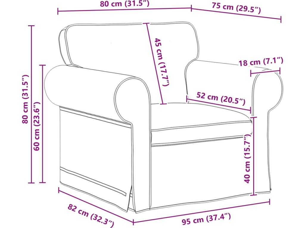 - 1 x pohovka: 95 x 82 x 80 cm (ŠxHxV)
