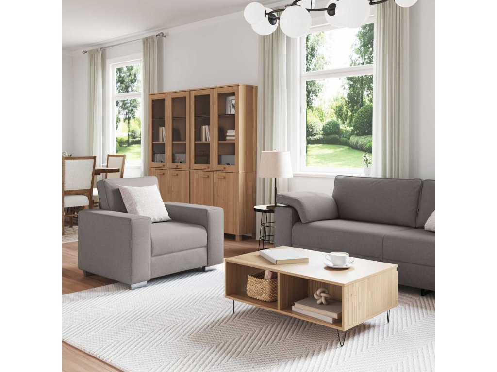 - Zahrnuté komponenty: Set obsahuje křeslo, 2-místnou a 3-místnou pohovku, všechny ergonomicky navržené s širokými opěrkami pro pohodlí a odkládání drobností.