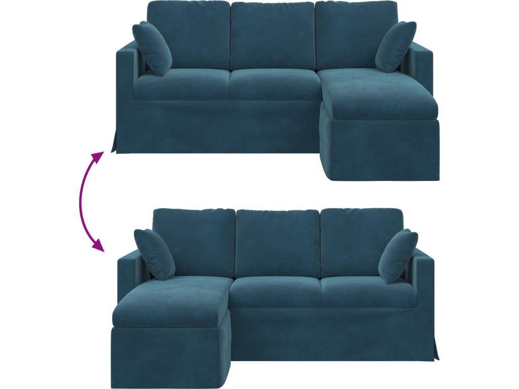 - Kvalitní materiály: Pohovka má robustní kovový rám pro dlouhověkost a stabilitu, a sametový potah dodává prodyšnost i styl.