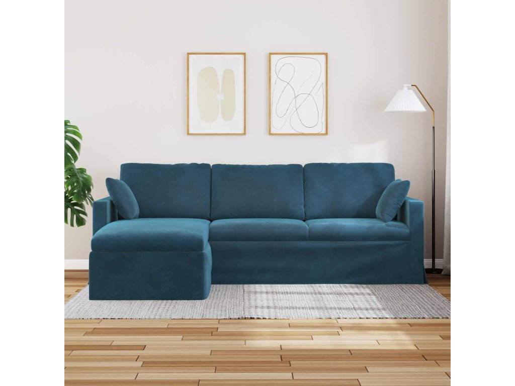 - Kvalitní materiály: Pohovka má robustní kovový rám pro dlouhověkost a stabilitu, a sametový potah dodává prodyšnost i styl.