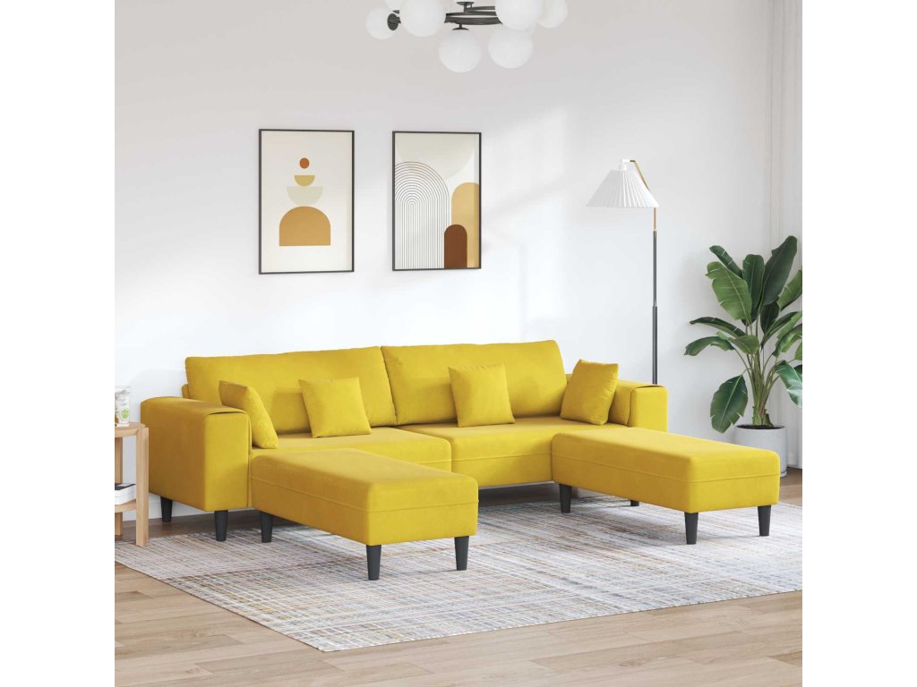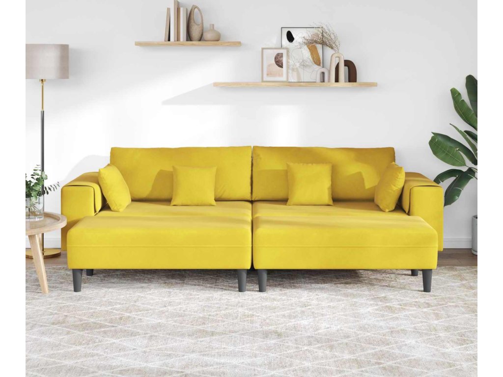 Pohovka s polštářem 3 pcs Žlutá samet [3335178]