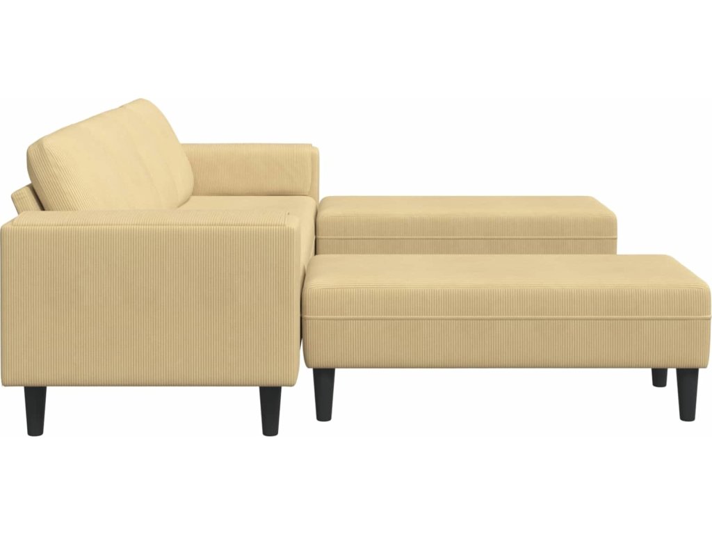 - Materiály: Tato moderní pohovka je potažená manšestrem, který je luxusní a zároveň odolný. Je prodyšná, takže se vzduch dobře cirkuluje a vy se na ní budete cítit pohodlně i při delším sezení. Navíc tkanina je příjemná na dotek a prodlužuje životnost pohovky, takže dlouho vydrží.