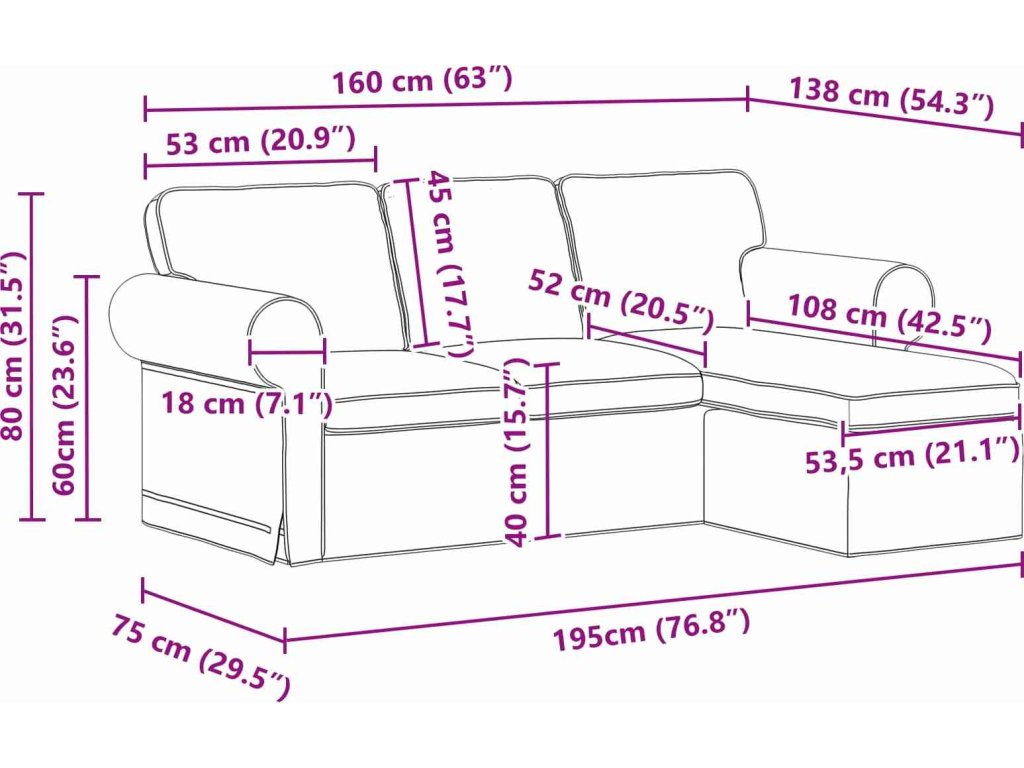 - Celkové rozměry: 195 x 138 x 80 cm (Š x H x V)