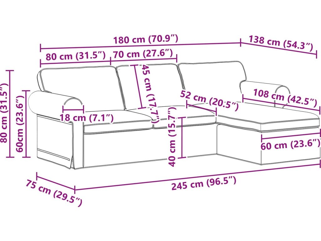 - Celkové rozměry: 245 x 138 x 80 cm (Š x H x V)