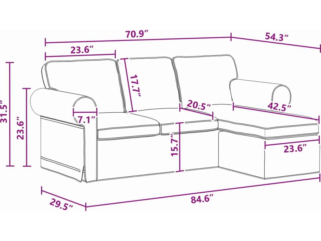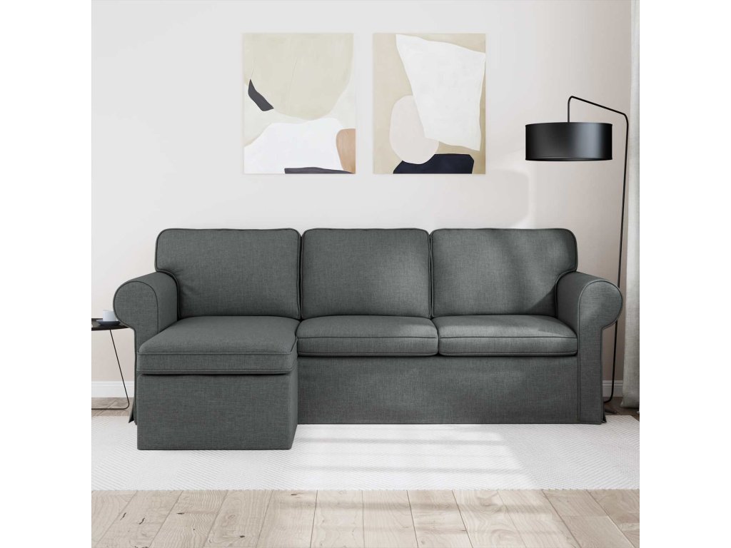 - Součásti: Pohovka má opěrky a plastové nožky, což zajišťuje stabilitu a pohodlí. Design nohou poskytuje pevný základ a opěrky dodávají potřebné pohodlí.