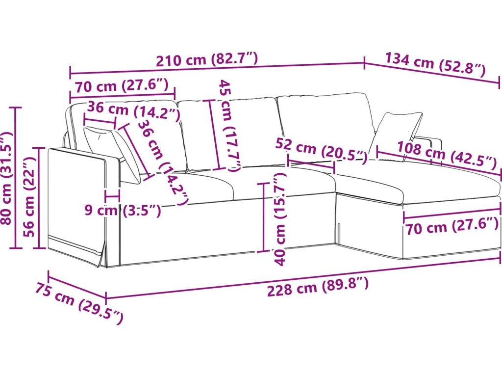 - Celkové rozměry: 228 x 134 x 80 cm (Š x H x V)
