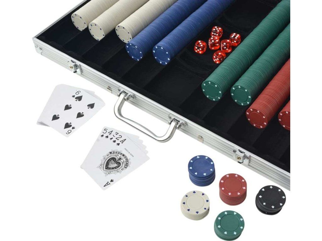 Tato sada obsahuje 6 kasinových kostek, 3 balíčky karet, 1 žeton small blind, 1 žeton big blind, 1 žeton Dealer a 1000 žetonů. Tato sada je dodávána v hliníkovém pouzdře.
