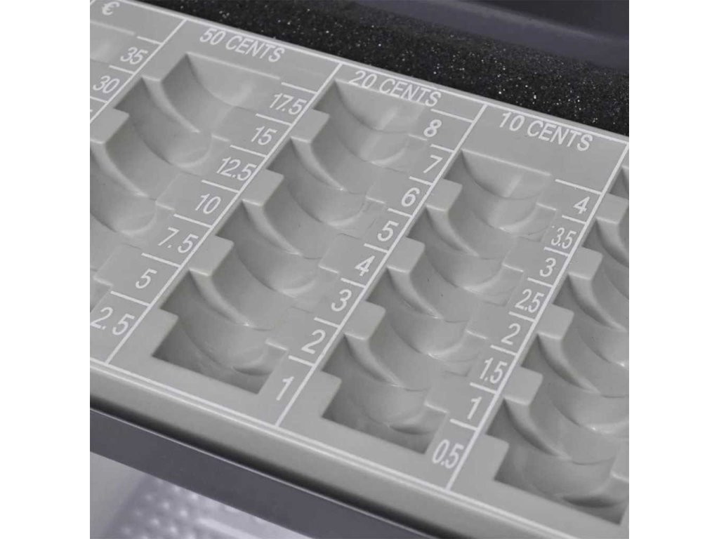- Organizované úložiště hotovosti Uvnitř pokladničky najdete praktické přihrádky na bankovky, mince nebo účtenky – žádný nepořádek, vše máte hned po ruce, což se vyplatí v situacích s hodně hotovostí nebo osobním použitím.