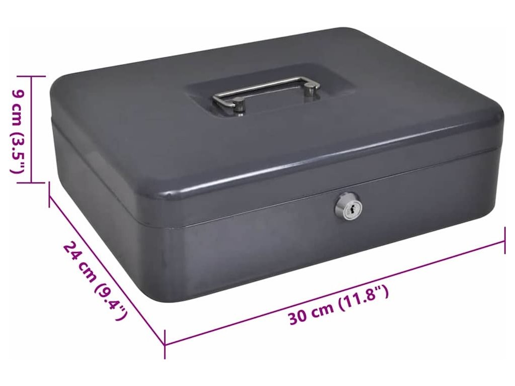 Pokladna se zámkem Tmavě šedá 30 x 24 x 9 cm Ocel [42011322]