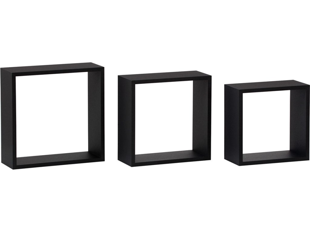 Sada tří nástěnných poliček v matné černé barvě je vyrobena z MDF materiálu, který nabízí kvalitní zpracování a snadnou údržbu. Poličky mají jednoduchý, moderní design s čistými liniemi a hranami, které podtrhují jejich minimalistický vzhled. Různé velikosti jednotlivých kusů umožňují variabilní uspořádání na stěně podle potřeby a prostoru. Jsou vhodné pro vystavení dekorací, knih nebo drobných předmětů a díky pevnému provedení zajistí stabilní oporu. Balení obsahuje ochrannou fólii pro bezpečnou manipulaci a přepravu.