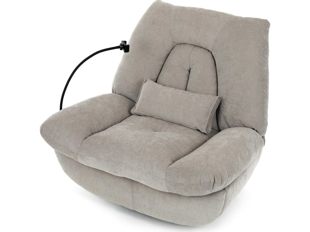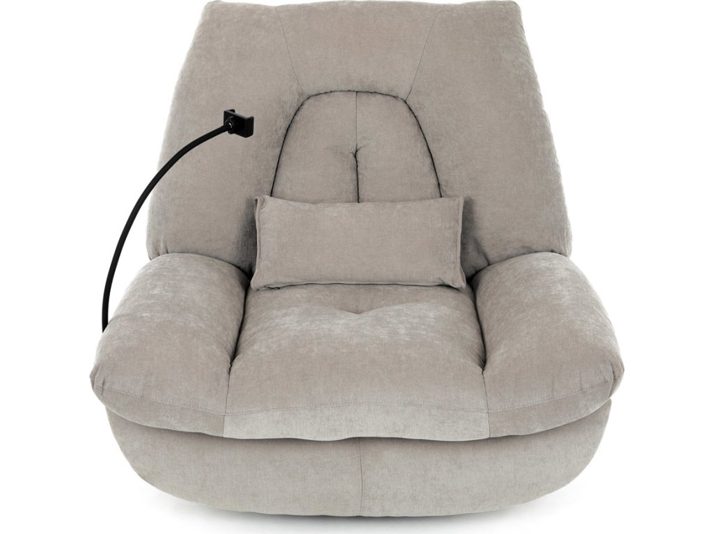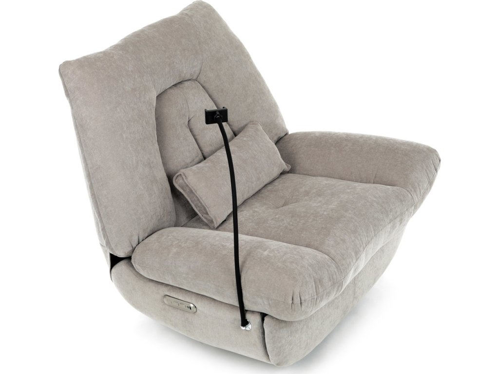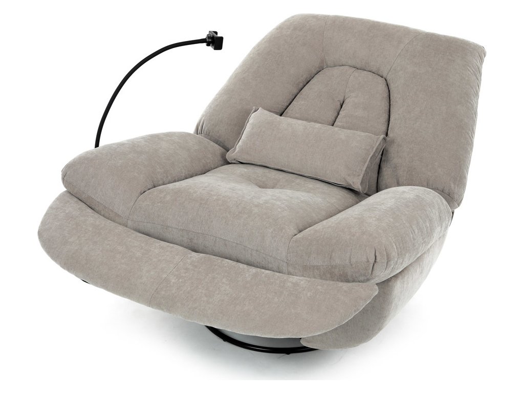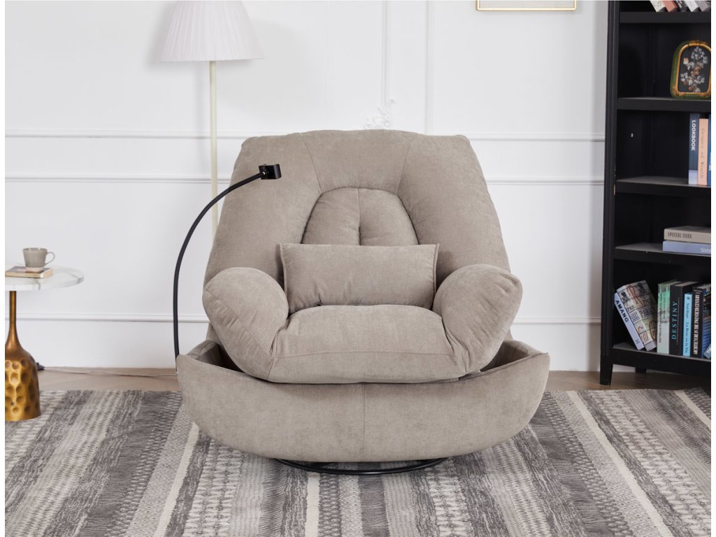 TV křeslo s elektrickým polohováním v krémové látce nabízí komfortní sezení s možností nastavení polohy. Pevná kovová podnož umožňuje rotaci až do 240° a houpací pohyb s úhlem 30°, což zvyšuje relaxační zážitek. Součástí je zabudované ovládání, držák telefonu a praktický úložný box, který pomáhá udržet pořádek v blízkosti sedacího místa. Křeslo je navrženo s ohledem na nosnost až 160 kg a rozkládací funkcí pro zvýšení pohodlí během odpočinku. Látkový potah je příjemný na dotek a snadno se udržuje, což doplňuje celkovou praktičnost tohoto multifunkčního křesla.