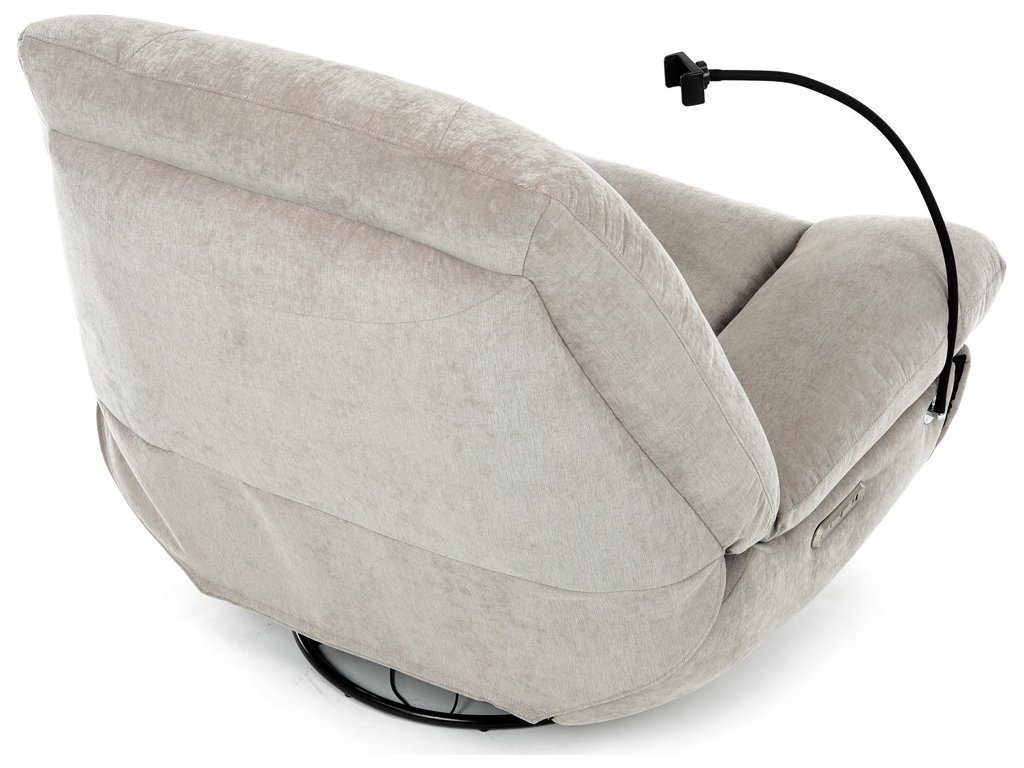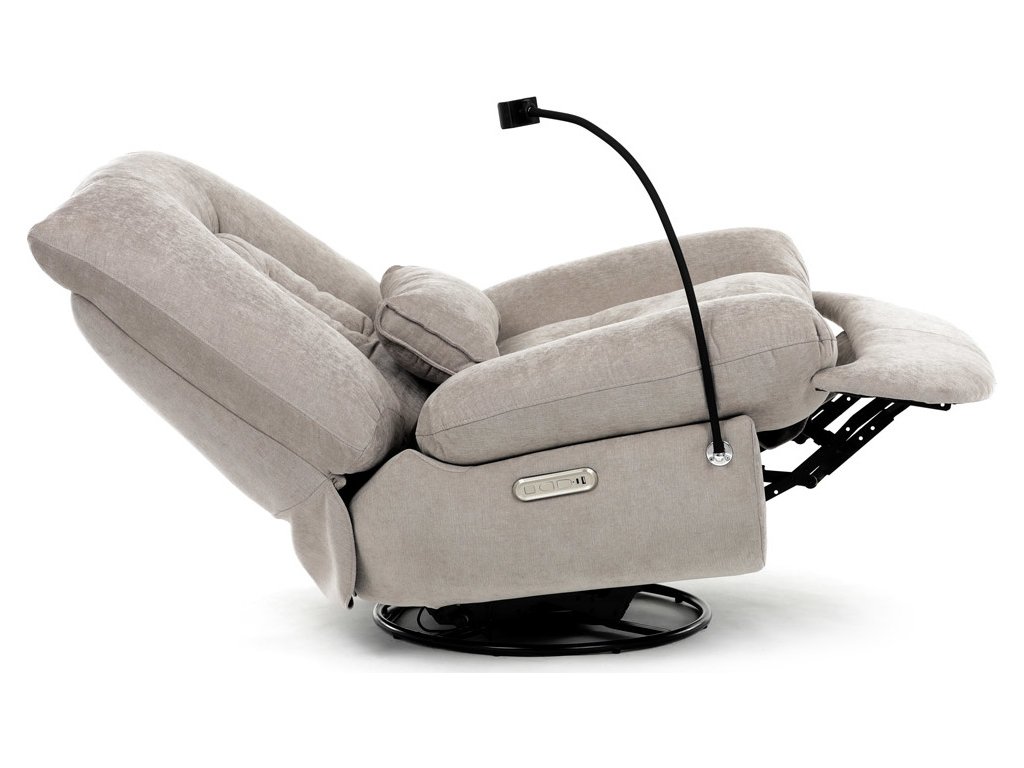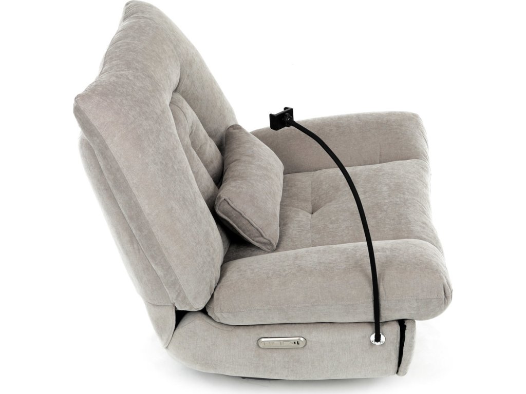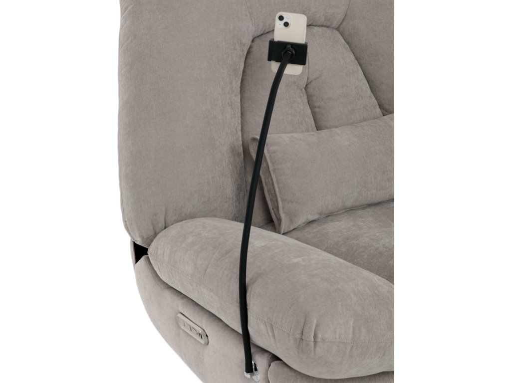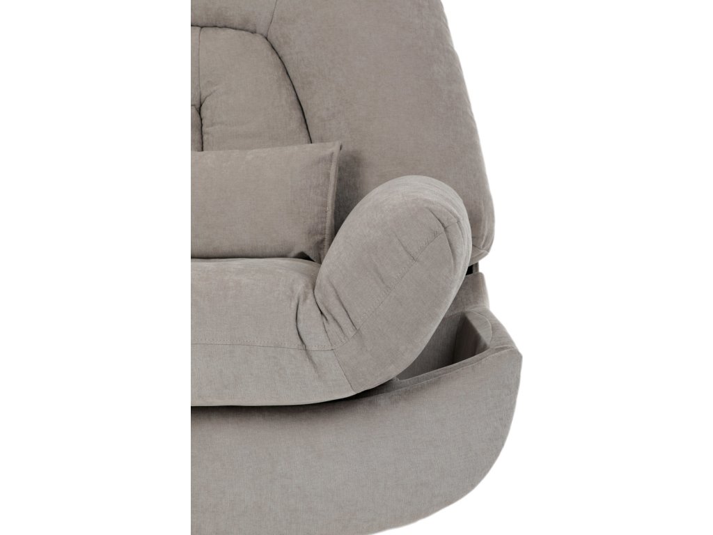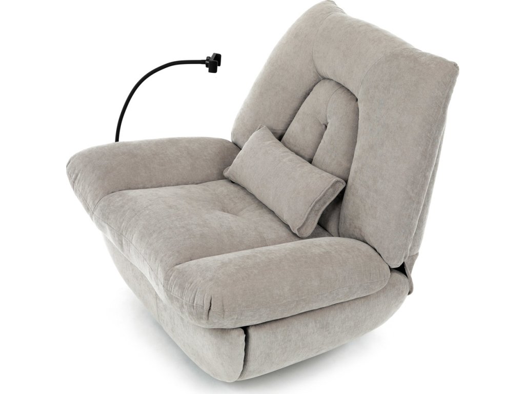TV křeslo s elektrickým polohováním v krémové látce nabízí komfortní sezení s možností nastavení polohy. Pevná kovová podnož umožňuje rotaci až do 240° a houpací pohyb s úhlem 30°, což zvyšuje relaxační zážitek. Součástí je zabudované ovládání, držák telefonu a praktický úložný box, který pomáhá udržet pořádek v blízkosti sedacího místa. Křeslo je navrženo s ohledem na nosnost až 160 kg a rozkládací funkcí pro zvýšení pohodlí během odpočinku. Látkový potah je příjemný na dotek a snadno se udržuje, což doplňuje celkovou praktičnost tohoto multifunkčního křesla.