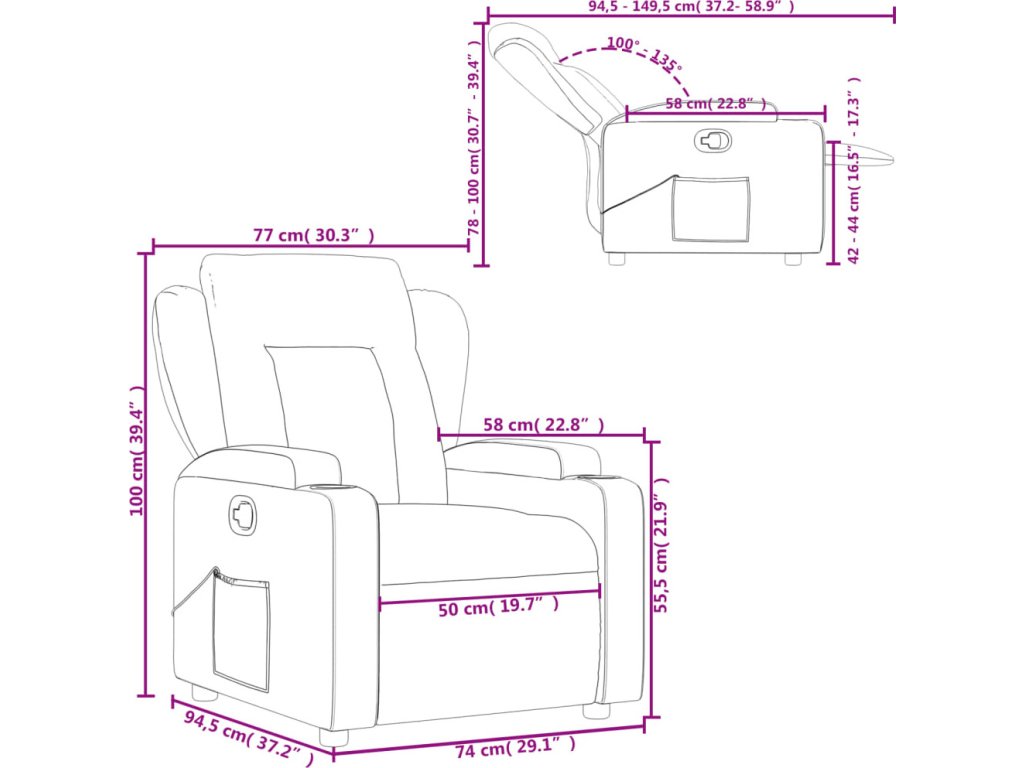 - Rozměry vsedě: 77 x 94,5 x 100 cm (Š x H x V)