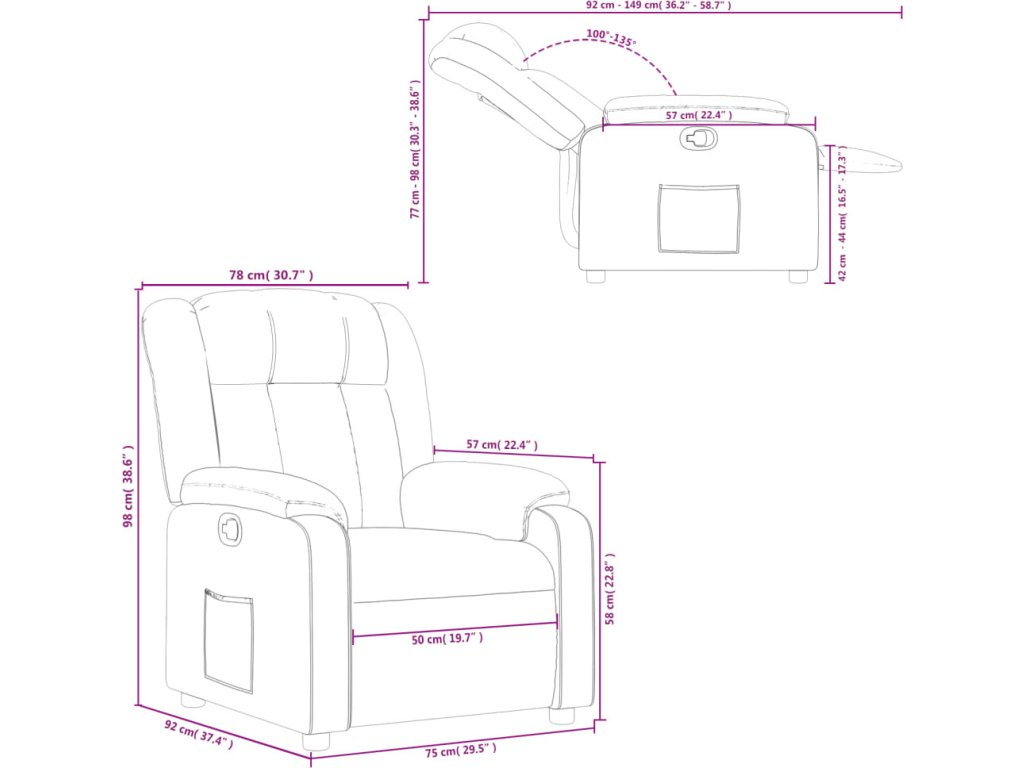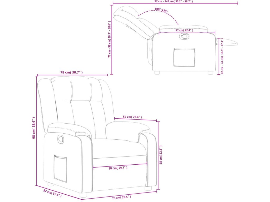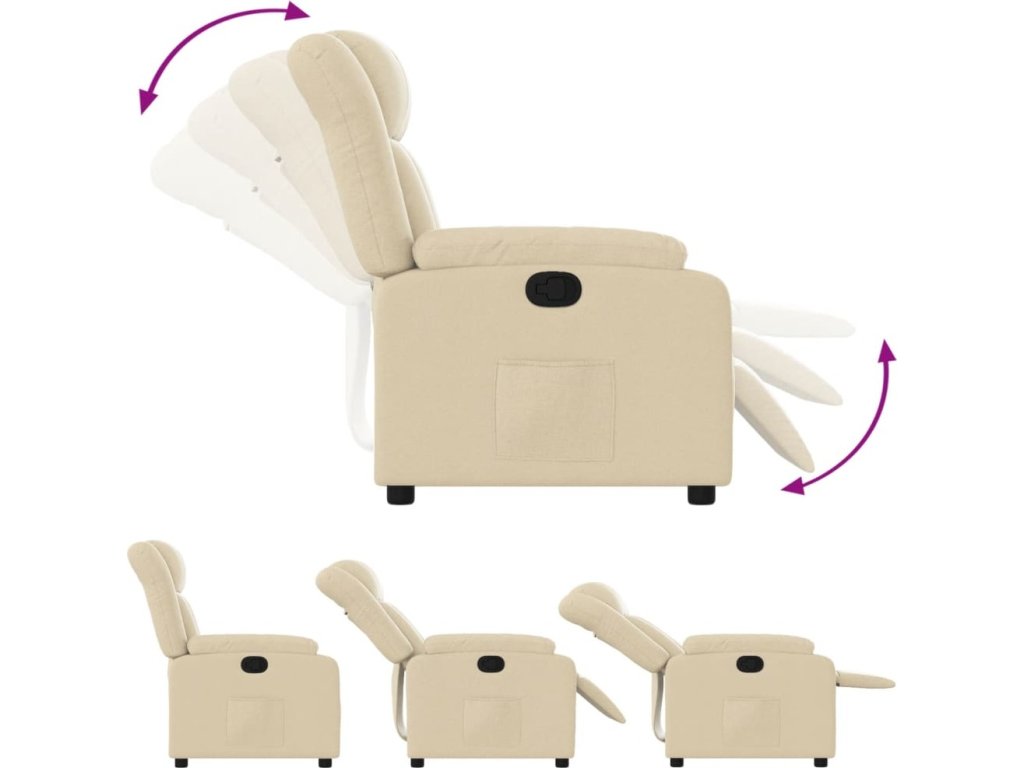 - Manuální funkce polohování: Toto polohovací křeslo má madlo na pravé straně. Opěrku nohou a opěradlo můžete ručně nastavit do libovolné polohy podle vašich potřeb jednoduchým zatažením za madlo. Tato funkce umožňuje maximální sklon 135 stupňů. Opěradlo se navíc snadno vrátí do původní polohy zatažením za madlo.