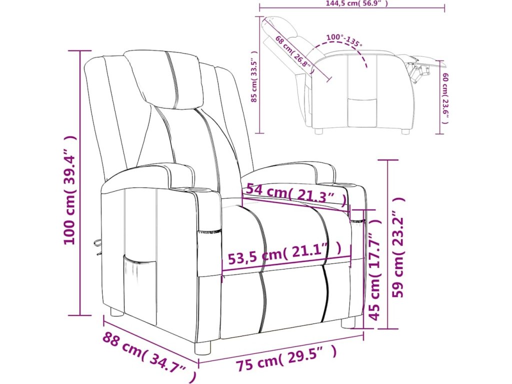 - Rozměry sklopeného křesla: 75 x 144,5 x 85 cm (Š x H x V)