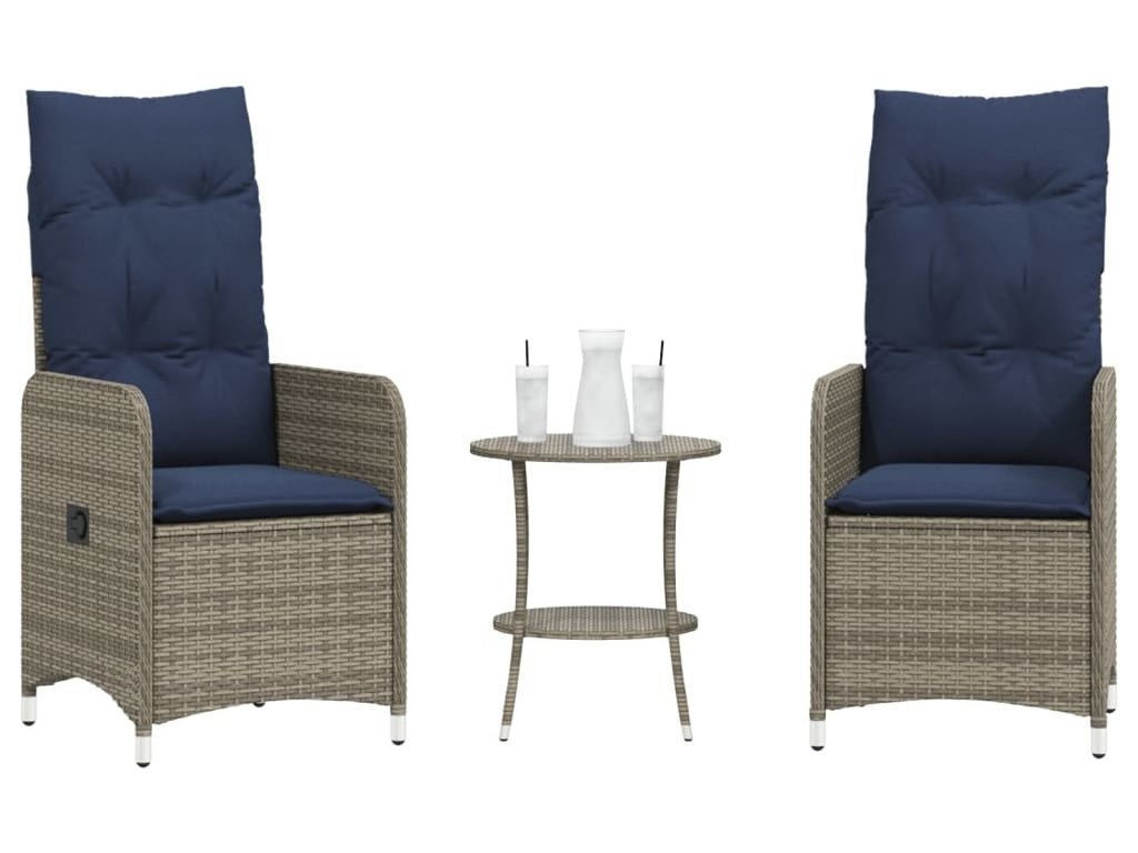Polohovací zahradní židle 2 ks se stolem šedé polyratanové [365694]