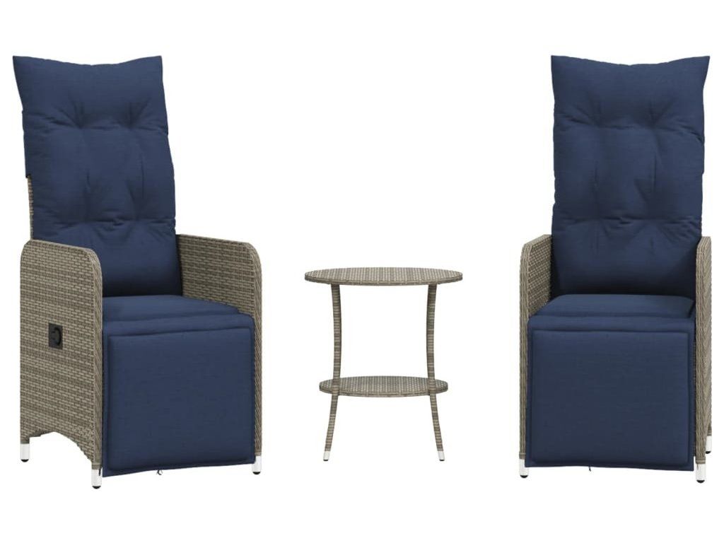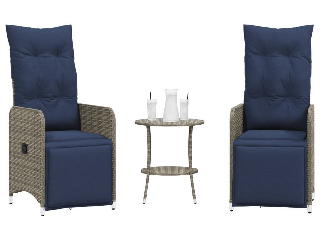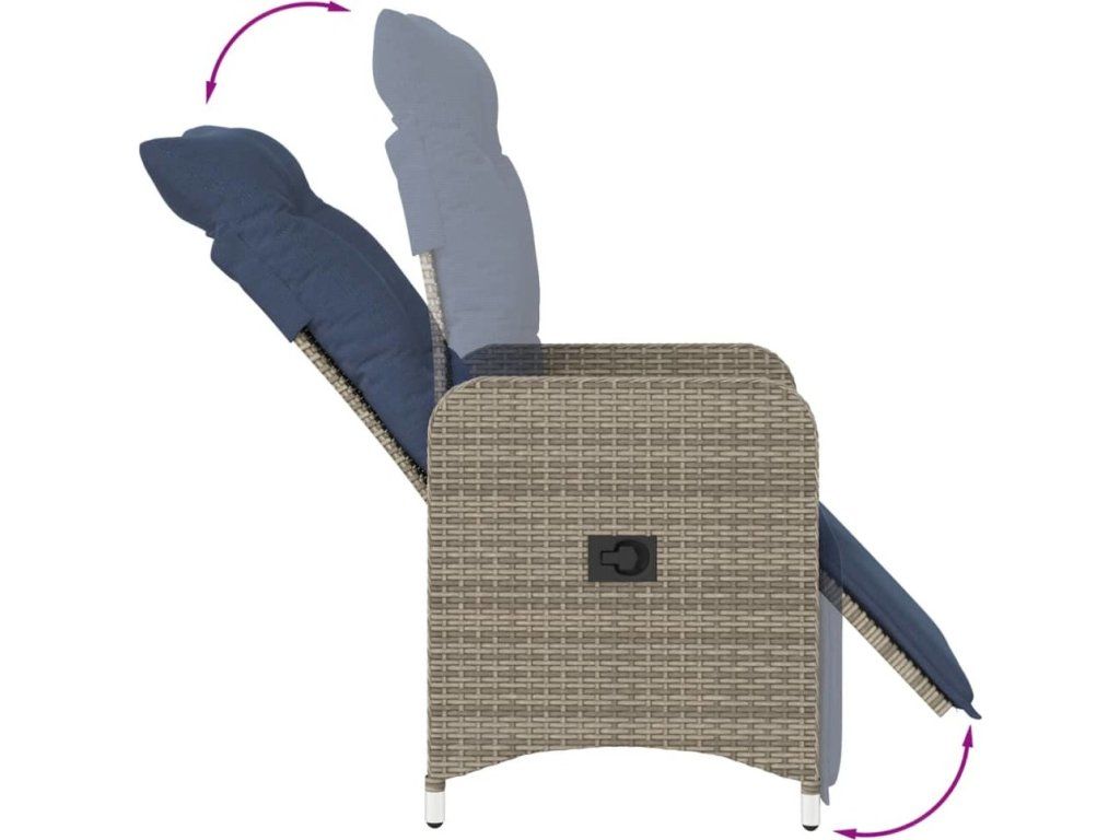 Polohovací zahradní židle 2 ks se stolem šedé polyratanové [365709]