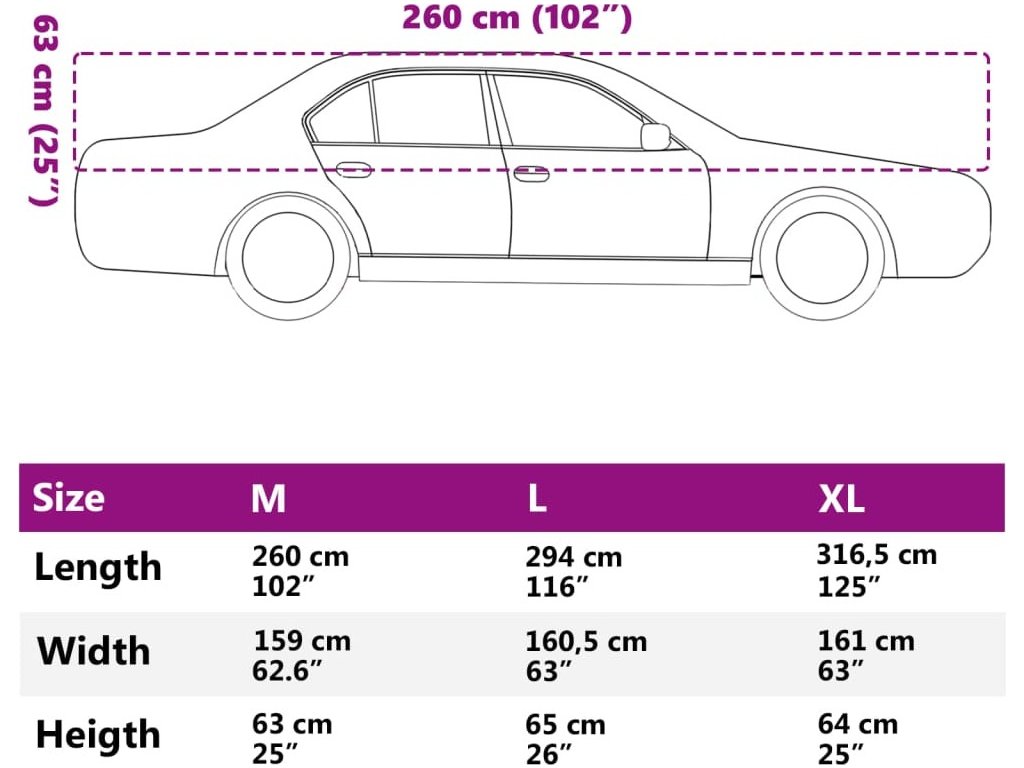 - Snadné skladování: Tento autopotah se dodává s praktickou taškou, která usnadňuje jeho skladování, když se nepoužívá.