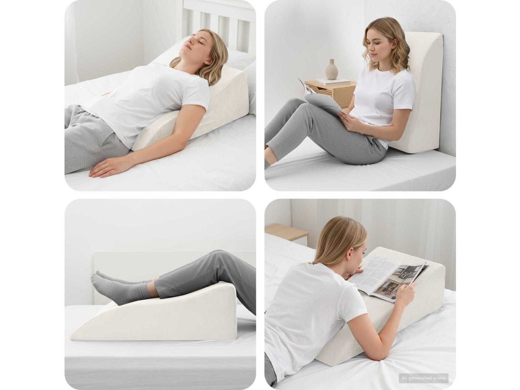 - Všestranné použití: Tento polštář je ideální pro pohodlí nohou v různých situacích - doma, v kanceláři, nebo při cvičení. Snadno se umístí kdekoli, od pohovky po postel, a přitom nezabírá místo.