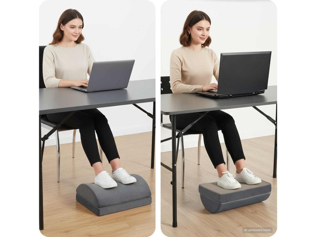 - Pevná PU pěna: Uvnitř se skrývá PU pěna, která je lehká, ale pevná a poskytuje stabilní oporu pro vaše nohy. Uleví od tlaku, takže je ideální na dlouhé sezení u stolu nebo při sledování TV.