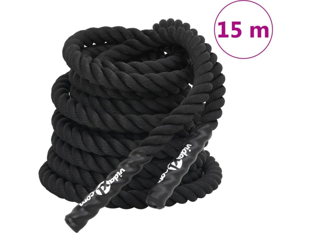 - Odolný materiál: Třípramenné kroucené bojové lano je vyrobeno z odolného polyesterového vlákna s vysokou pevností v tahu, které zabraňuje zlomení a třepení.