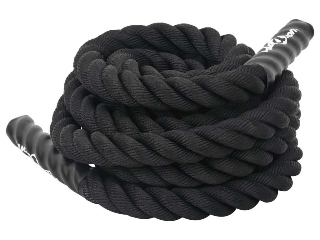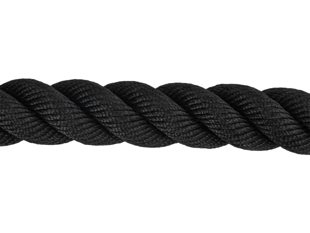 - Odolný materiál: Třípramenné kroucené bojové lano je vyrobeno z odolného polyesterového vlákna s vysokou pevností v tahu, které zabraňuje zlomení a třepení.