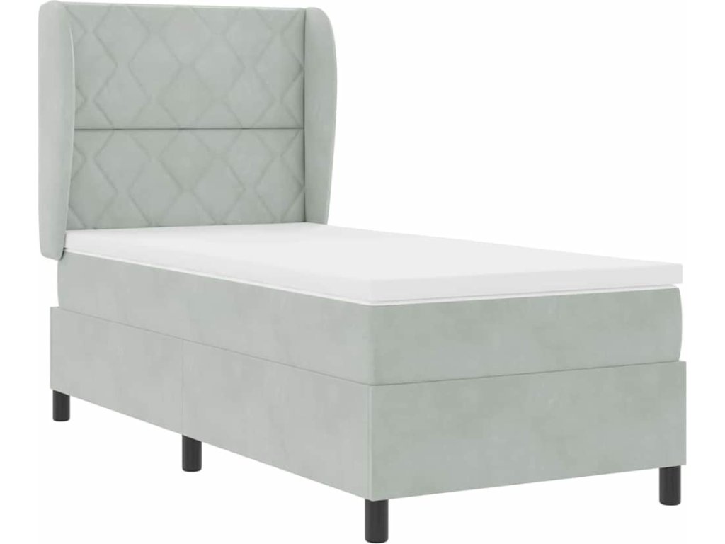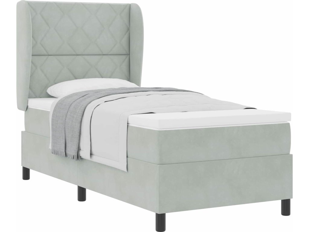Postel s boxspringem s čelo Světle šedá 190 x 90 cm Polyester [3340958]