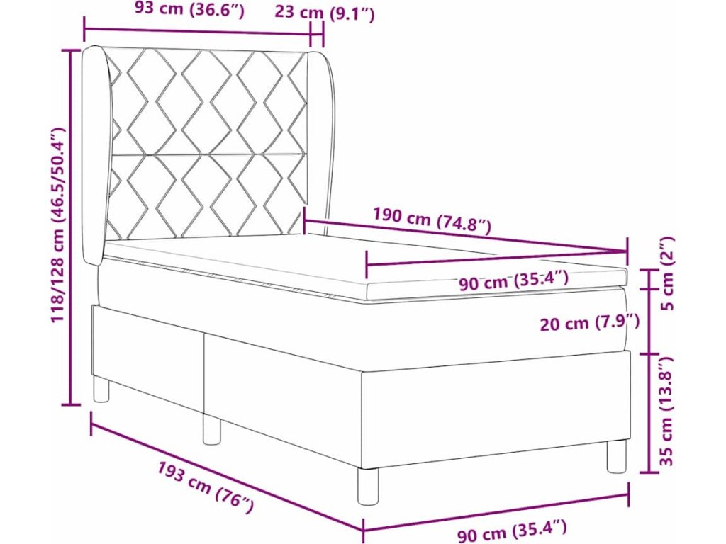- Kompatibilní velikost matrace: Krátké jednolůžko (90 cm x 190 cm nebo 35" x 75")