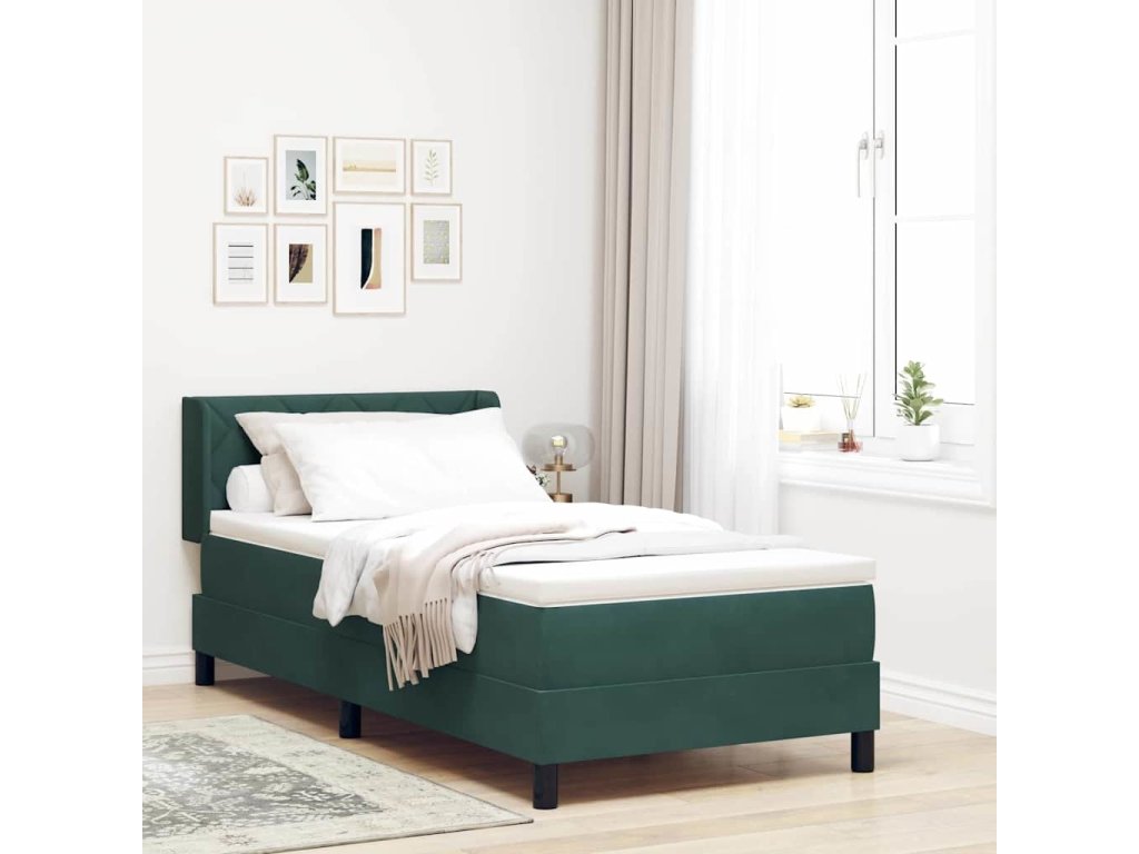 Postel s boxspringem s čelo Tmavě zelená 190 x 90 cm Polyester [3341501]
