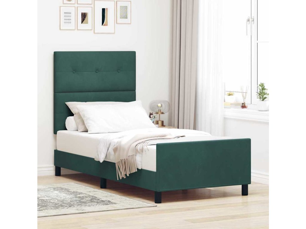 Postel s boxspringem s čelo Tmavě zelená 90 x 190 cm samet [3344912]