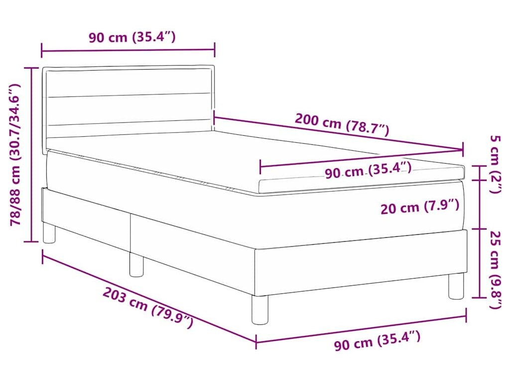 - Velikost matrace: Jednolůžko (90 cm x 200 cm nebo 35" x 79")