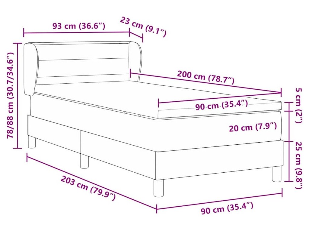 - Velikost matrace: Jednolůžko (90 cm x 200 cm nebo 35" x 79")