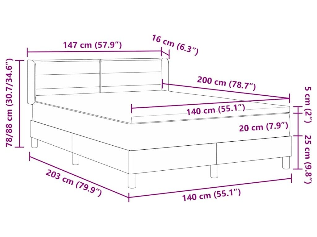 - Velikost matrace: Dvojpostel (140 cm x 200 cm nebo 55" x 79")