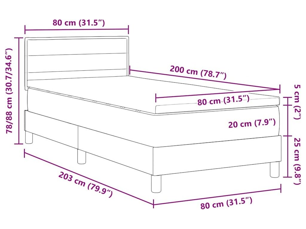 - Velikost matrace: Malé jednolůžko (80 cm x 200 cm nebo 31" x 79")