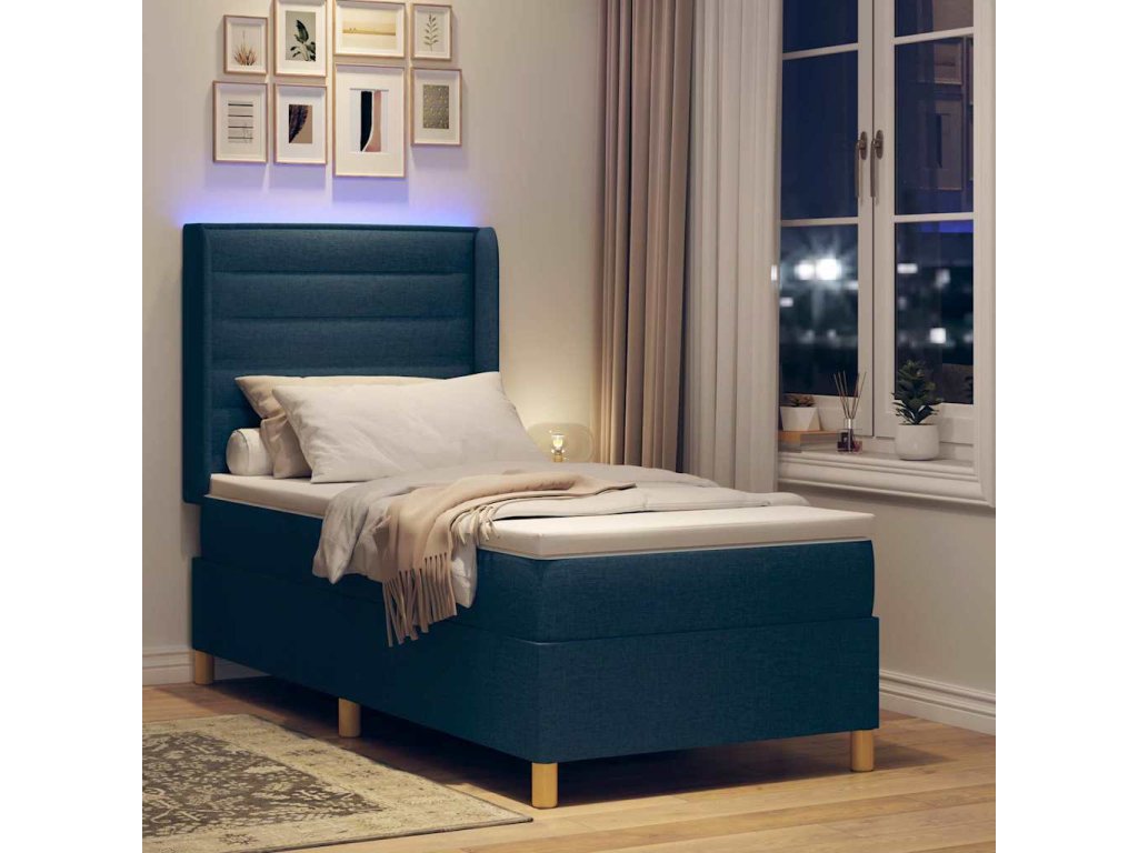 Postel s boxspringem s matrací s čelo Modrá 100 x 200 cm textil [3343622]