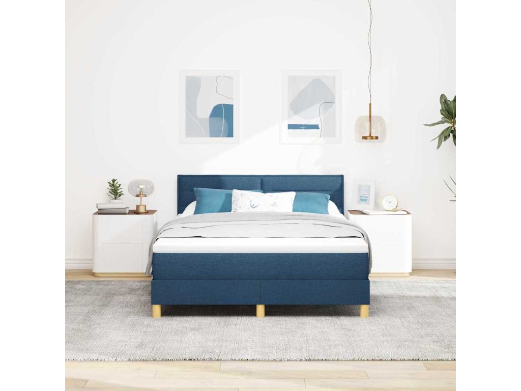Postel s boxspringem s matrací s čelo Modrá 140 x 200 cm textil [3338852]