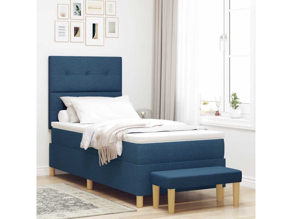 Postel s boxspringem s matrací s čelo Modrá 90 x 200 cm textil [3344274]