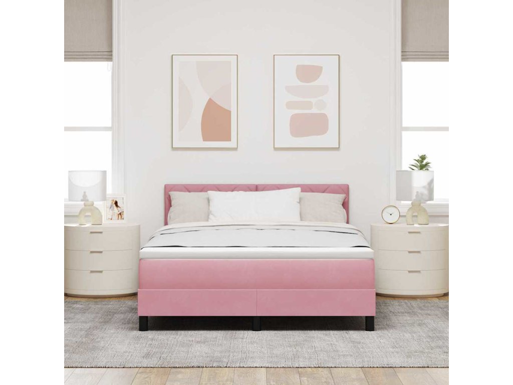 Postel s boxspringem s matrací s čelo Růžová 160 x 200 cm samet [3339253]